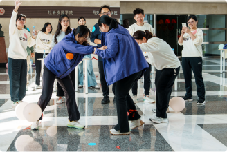 2025年10月28日下午,法商楼一楼大厅热闹非凡,社会发展学院工会精心筹备的教职工趣味运动会在此欢乐启幕,众多教师踊跃参与,在欢声笑语中释放活力、凝聚情谊。活动伊始,抽签分组环节迅速点燃氛围,老师们随机组成团队,以协作姿态迎接挑战。