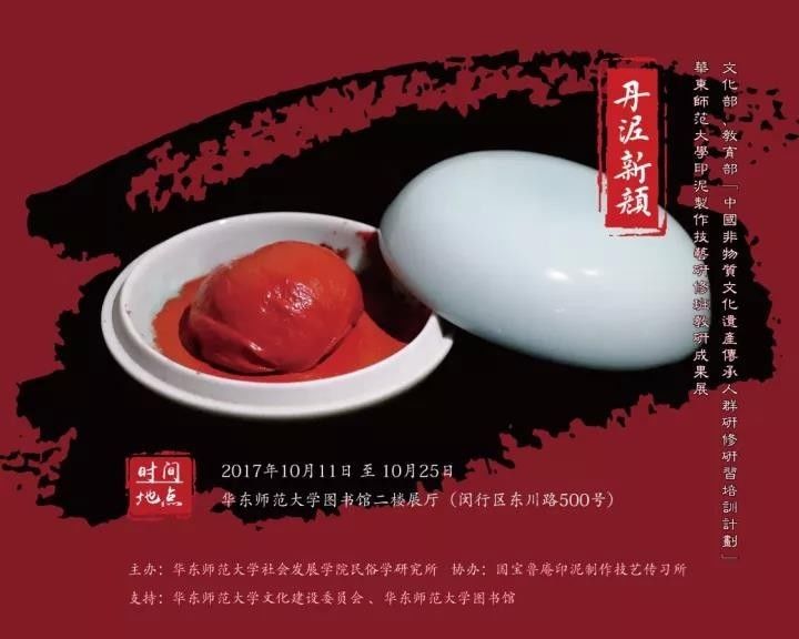 2017年7月,由华东师范大学社会发展学院民俗学研究所主办、国宝鲁庵印泥制作技艺传习所协办的文化部、教育部“中国非物质文化遗产传承人群研修研习培训计划”华东师范大学印泥制作技艺研修班在华东师范大学成功举办。