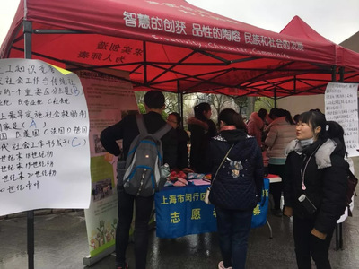 此外,现场还有“利群”与“九院”机构的实习社工开展的活动,这些实习社工也都是华东师范大学社工系的学生。机构准备了布袋和笔,让大家通过DIY的形式,制作属于自己的布袋,为环境的可持续做出自己的一份贡献;机构还邀请了同学们通过合影的方式,将社工理念传播出去;机构还在现场招募大学生志愿者,让同学们能在身体力行中体会与传递社工的价值与爱。