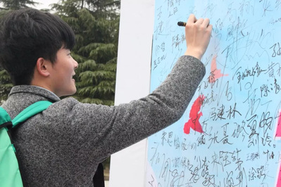 为了凝聚大家对国际社工日的祝福,主办方准备了一面签名板,并现场邀请路过的同学们在签名板签名,送上自己对国际社工日的祝愿以及对社会工作事业发展的支持。虽然有些小雨,同学们的热情却并未受到影响,不一会儿签名板上就签上了密密麻麻的名字。此外,许多学院的老师们也利用短暂的午休参与到签名活动之中,现场的气氛十分热烈。
