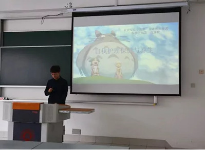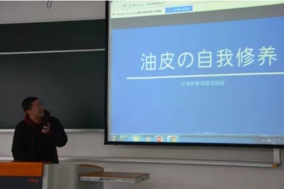 随后是2016级的刘栋同学以自身经历为例,分享自我护理的经验。首先是护肤品的选择,刘栋同学强调每个人的皮肤特质是不一样的,因此必须选择合适自己的护肤品;除了使用护肤品,日常的防护也是至关重要的,尤其是防晒,因为皮肤的头号敌人就是紫外线。最后,刘栋同学总结道油性皮肤虽然是天生的,但经过后天的保养,是能够改善的。
