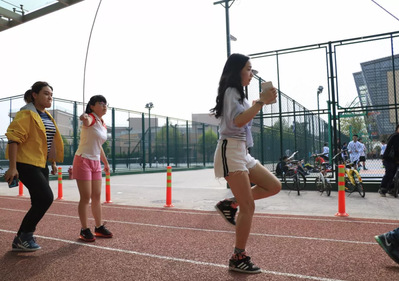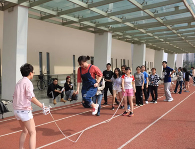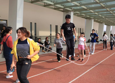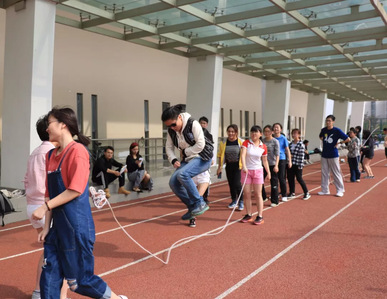 社会发展学院学生会文体中心讯 4月11日星期三下午2:40,社发长绳队于东操风雨跑道进行了阳光体育联赛长绳团体赛的比赛,参加比赛的共有12名队员,其中两名队员负责摇绳,其余十名队员进行长绳接力计数跳。
