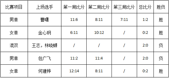 第二局女单比赛我方派出金心玥出战。金心玥在比赛过程中发挥优异,虽然身体不适也坚持完成了此次比赛,取得了非常好的成绩。最后金心玥以2:0的比分轻松获胜。至此,社发乒乓球队已经取得了两局比赛的胜利。