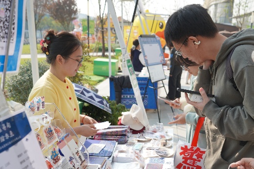 在寻甸文创产品展销区,由沪滇儿童共同参与设计创作的“阿卯彩”民族系列文创产品吸引众多市民驻足选购。这些融合苗族纹样、菌子、斗牛等元素的创意之作,不仅是两地孩子友谊的见证,更是文化共创的成果。社会学系硕士研究生党支部书记、乡土建设学社社长商海铃表示,我们希望通过这样的方式,让更多人了解寻甸、支持寻甸,以实际行动助力当地产品外溢增收。