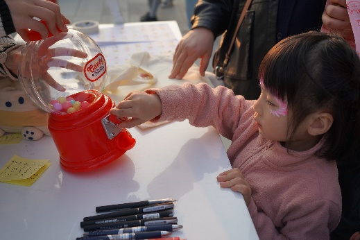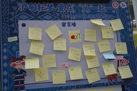在公益互动区,社会工作系硕士研究生党支部通过集章打卡、留言墙、游戏等环节有效调动现场氛围。留言板上写满了对寻甸孩子的祝福与鼓励,一字一句,都是沪滇情深的最好注脚。