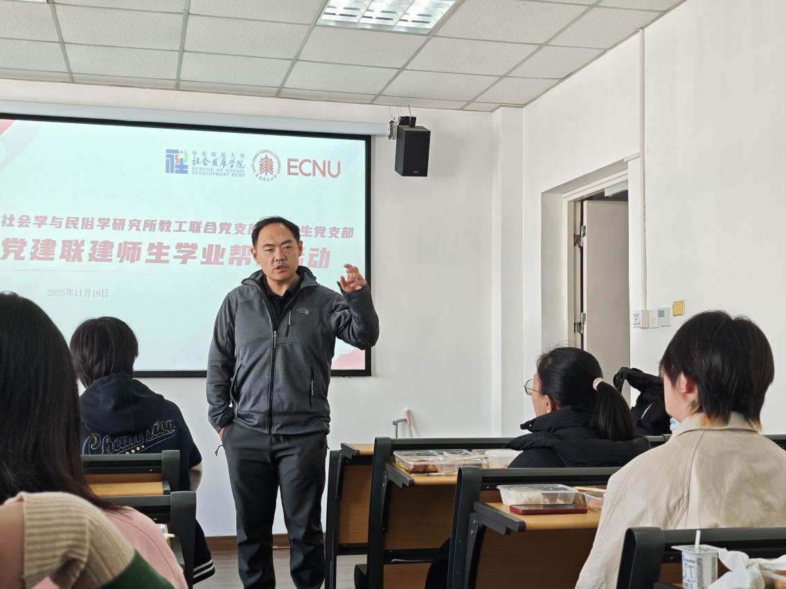 为充分发挥党建引领作用,推动师生党支部共建共融,切实助力本科生学业发展与成长,11月19日,社会学系与民俗学研究所教工联合党支部与本科生党支部共同举办“党建引领,学业帮扶”师生午餐会。活动邀请到了社会学系与民俗学研究所教工联合党支部书记吴越菲老师,支部委员王均霞老师,社会工作系与人口所教工联合党支部吴同老师,本科生党支部书记黄超老师,人口所顾高翔老师,以及本科生辅导员、院团委书记张睿老师。老师们聚焦考研备战关键期,围绕备考技巧、心态调整、复习策略等内容与在场同学展开深入交流,为即将迎来研究生入学考试的同学们送上暖心指导与有力支持。活动还邀请了2025级社会学硕士唐锐利学姐进行经验分享,为同学们提供具体的学习方法与实战建议。