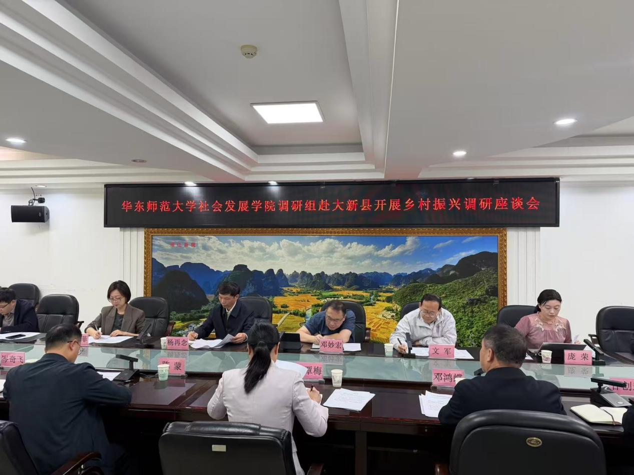为对接服务乡村全面振兴和加快革命老区振兴发展的国家战略,深化校地合作,2026年3月15日至16日,华东师范大学社会发展学院院长、人工智能与城乡融合发展研究中心执行主任文军,副书记兼副院长、人工智能与城乡融合发展研究中心秘书长庞荣,社会学系副系主任、人工智能与城乡融合发展研究中心副秘书长吴越菲等赴广西崇左市大新县开展实地调研。广西农业农村厅党组成员、自治区乡村振兴外资项目发展中心主任邓妙宏,自治区乡村振兴外资项目发展中心项目管理处处长陆汉玄等领导陪同调研。