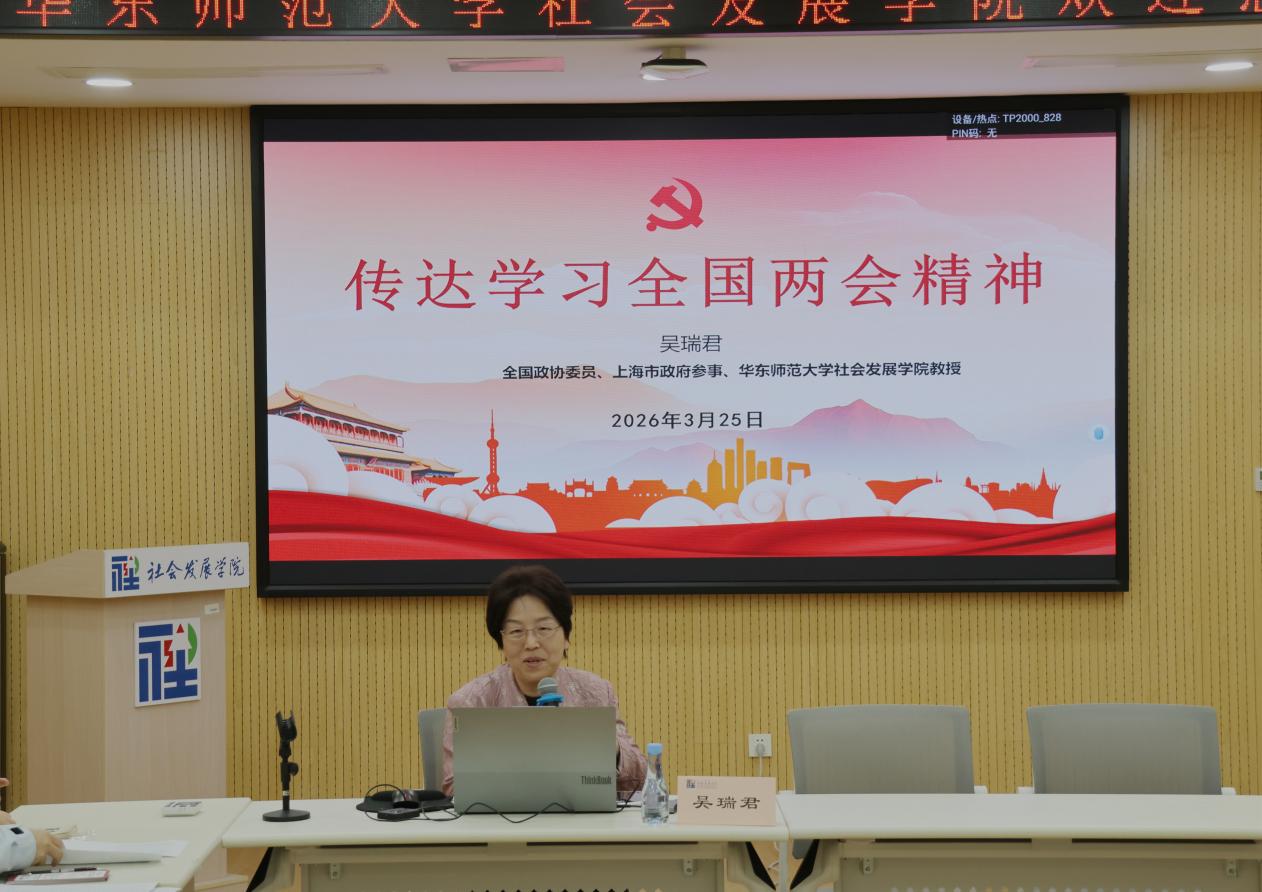 全国政协委员、上海市政府参事、人口研究所教授吴瑞君传达2026年全国“两会”精神。吴瑞君结合自身参会履职经历,重点解读了“十五五”规划纲要中与社会学学科紧密相关的核心部署。她指出,本次“两会”站在“十五五”开局和2035年远景目标冲刺衔接的关键历史节点,意义重大。规划纲要首次将“完善人口发展战略,促进人口高质量发展”独立成篇,并将“加大保障和改善民生力度,扎实推进全体人民共同富裕”作为社会建设的重要篇章,体现了发展理念从“物”到“人”、从“量”到“质”的深刻转型,以及民生福祉在高质量发展中的核心地位。她还强调,面对学科交叉融合趋势,学院教师应主动打破学科壁垒,积极对接国家重大战略需求,将理论研究与政策实践相结合,踊跃参与到学校及学院的各类跨学科平台建设中。