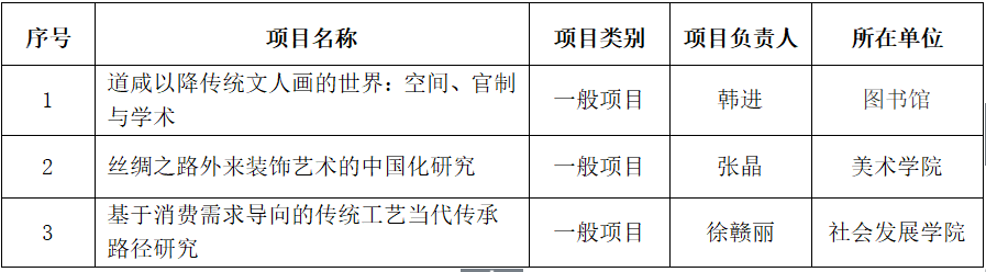 近日,全国艺术科学规划领导小组办公室公布了2018年度国家社科基金艺术学项目立项名单,我校有3个项目获得立项,立项数全国并列第9,为我校历史最好成绩。其中,我院民俗学研究所徐赣丽教授的《基于消费需求导向的传统工艺当代传承路径研究》获得了一般项目立项。这是我院民俗学研究所拿到的第一个艺术类国家社科基金项目,该项目有意进行社会学、民俗学、传统工艺等跨学科交叉研究。