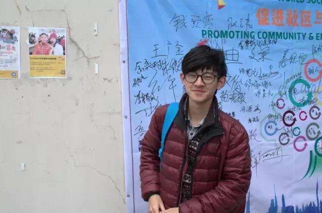 在签名墙上留下名字的同学