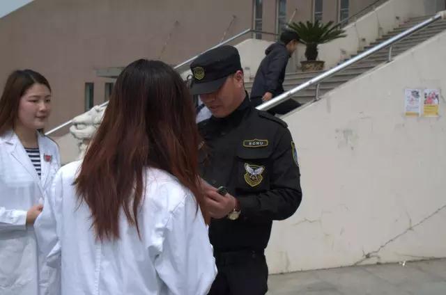 来自于九院的“微笑天使”向路过的保安进行宣传