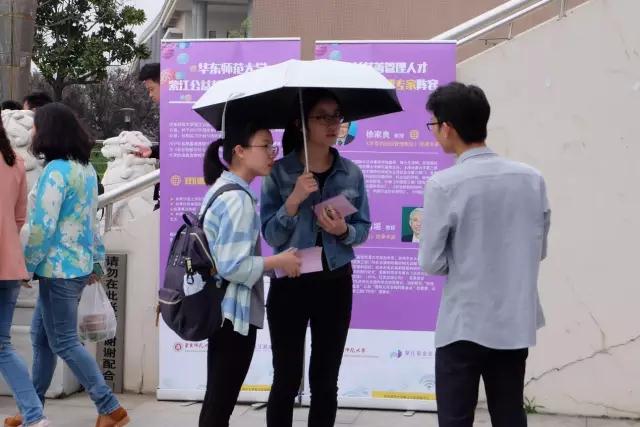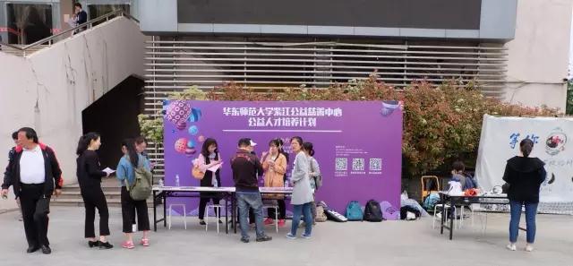2017年4月21日11:00,华东师大紫江公益慈善中心暑期课程咨询会在华闵食堂前开始了闵行校区的招生宣传。本次咨询会由华东师大社会发展学院的薛红老师和教育发展基金会的李露萍老师为大家进行讲解和答疑,紫江公益基金会的范嘉妍副秘书长也来到现场,还有多位学生志愿者参与到招生宣传活动中。