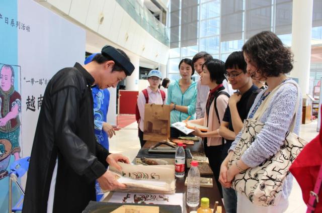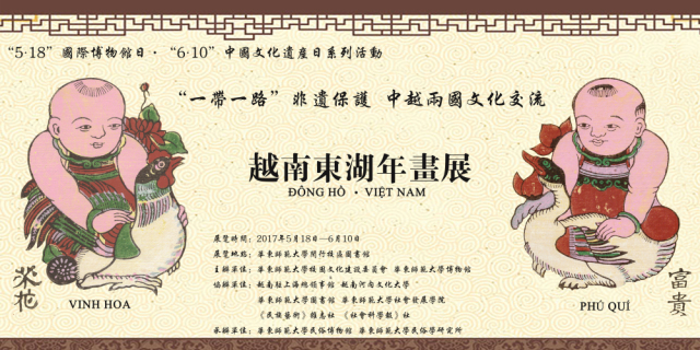 本次展览得到了越南驻上海总领事馆、越南河内文化大学、华东师范大学图书馆、华东师范大学社会发展学院、《民族艺术》杂志社、《社会科学报》社的大力支持,是华东师范大学拓展“一带一路”文化交流,迎接“5•18国际博物馆”和“6•10”文化和自然遗产日的系列活动之一。展厅设在我校闵行校区图书馆二楼展厅举行,展出时间为5月18日至6月10日。