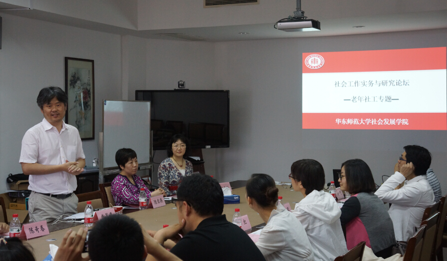 2017年5月22日下午,华东师范大学社会发展学院社会工作系举办的“社会工作实务与研究论坛——老年社工专题”在法商楼525顺利举行。本次论坛基于华东师范大学——上海市第一福利院市级示范基地的建设基础,总结研究生在老年社会工作实务方面的成果积累,交流机构老年社会工作实务的多元视角,指导研究生老年社会工作领域中干预研究的思路和模式。作为研究生院支持的学术论坛之一,本次论坛邀请了来自复旦大学、华东理工大学、华东政法大学、上海师范大学、华东师范大学的专家老师,以及上海市社会福利中心、上海市第一社会福利院、上海市第三社会福利院、上海市尽美长者服务中心、上海市宝山社工组织中心社会实务机构的社会工作者以及十余名社会工作专业的研究生一起进行学术研究成果和方案的交流。
