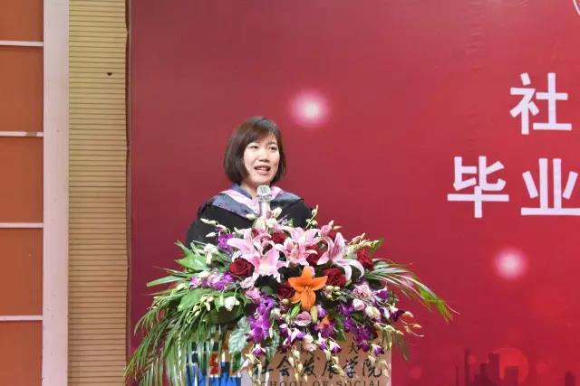 首先,我要代表2013级社会发展学院全体毕业生向精心培育了我们四年的学院老师和领导表示衷心的感谢,谢谢老师们在这四年间对我们的关爱与培养,你们的教导和支持是我们在大学期间收获的一笔最好的人生财富。同时也要跟在座的同学们互道一声:祝福和珍重!祝贺大家今天穿上学士服在这里毕业,作别本科的岁月,翻开人生的新一页;同时也跟大家道一声珍重,前路漫漫,或许我们宝剑尚未配妥,出门已是江湖,但相信这四年间大学所留给我们的将是我们前行路上最好的陪伴。
