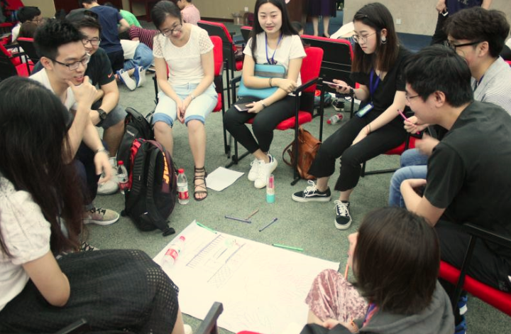 在第二天的社区探访分享会中,香港理工大学的学生以小组为单位分别对他们社区探访之旅的经历及收获进行了分享。分享会的一开始,韩晓燕教授引导大家将小组的社区探访经历以图画方式展现出来并且上台进行分享。