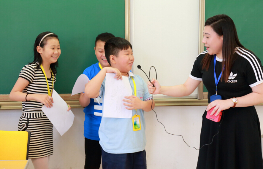 同时,经过三天的相处,同学们彼此之间的关系也越来越亲密。例如在英语课堂上“你画我猜”的游戏中,每个小组派代表上台画出心中的水果,其他组员立马就可以写出相应的英语单词。这不仅巩固了大家的英语知识还让大家体验到了团队合作的喜悦之感。