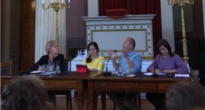 在大会最后一天的中国-北欧不同代际性别研究学者的圆桌会议中,魏伟作为当代中国性别研究年轻一代学者的代表,与其他三位来自中国和北欧的学者一起,围绕性别研究的代际差异以及在新的社会语境下面临的机会和挑战展开了对谈。作为代际差异的重要表现之一,魏伟讨论了“同志”/酷儿研究和新近开展的男性特质研究对于中国大陆传统性别研究领域的丰富和拓展。